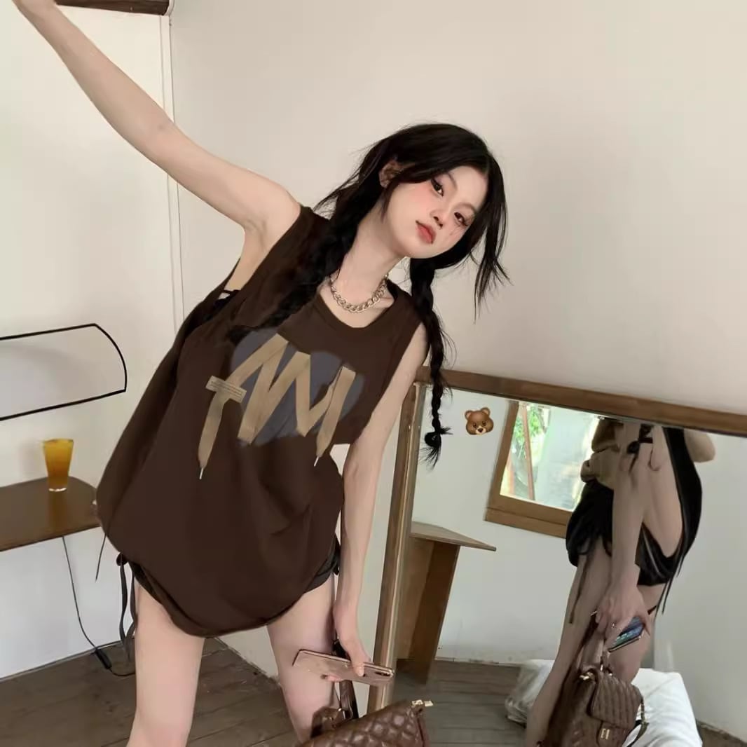 アメリカンオーバーサイズ コットンノースリーブTシャツ|ゆったりシルエット・夏の万能トップス