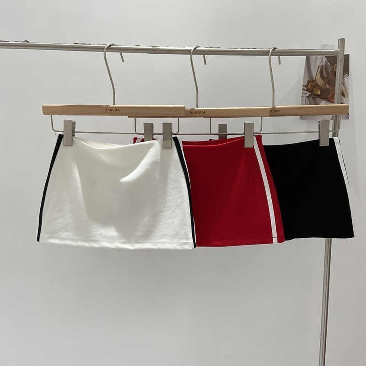 タイトシルエットのミニスカート。