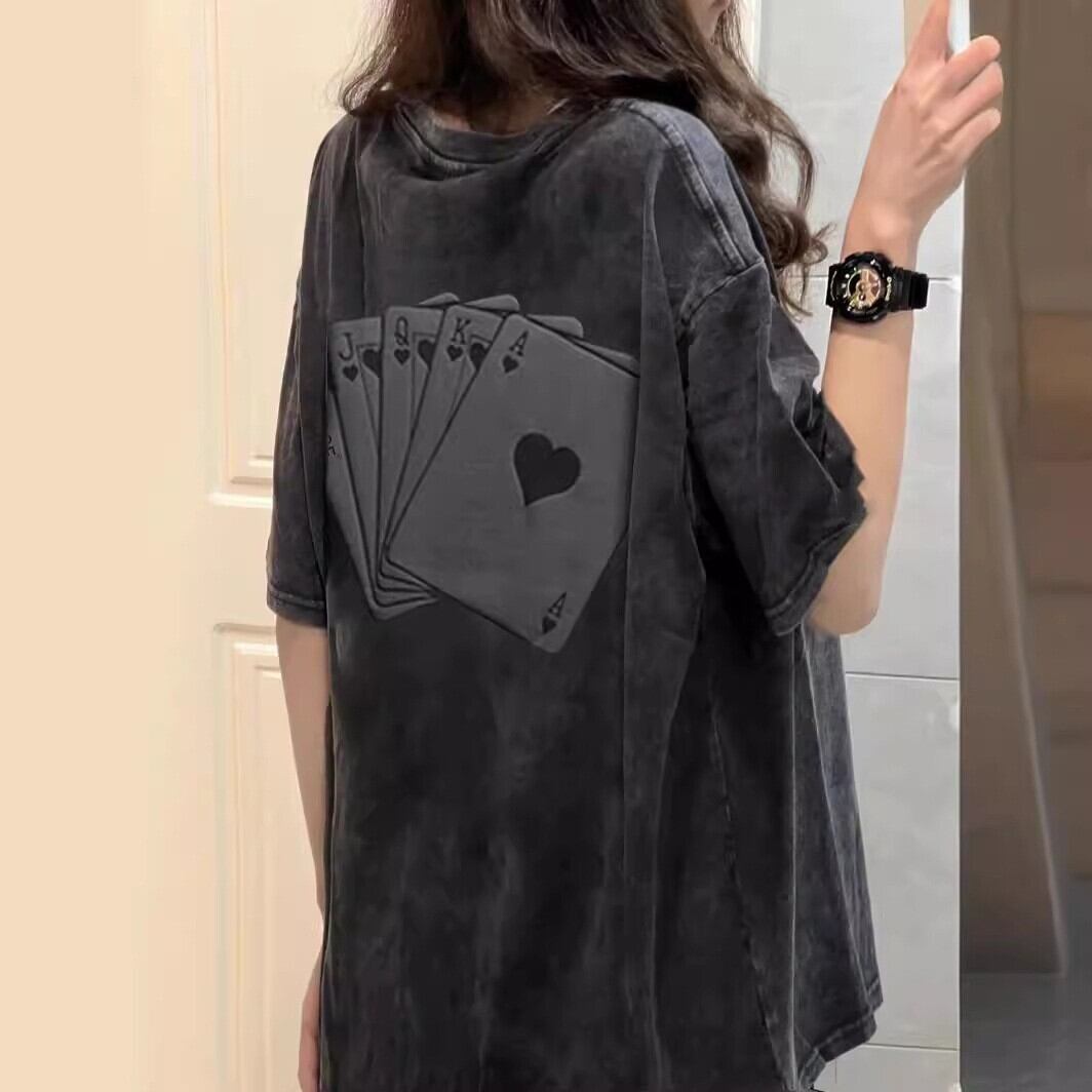 アメリカンヴィンテージ ウォッシュTシャツ|トランププリント×ルーズシルエット