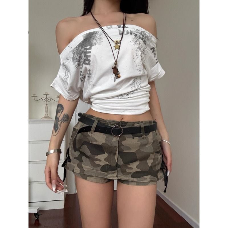 【2026 Spring】ローウエスト迷彩デニムミニスカート|ヴィンテージライク|Y2Kムード