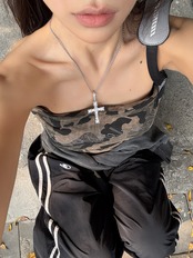 迷彩プリント ラインストーン付きチューブトップ|美式レトロ・ショート丈ノースリーブ