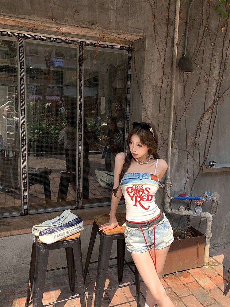 ・ホワイト(デニム切替キャミソール)×ライトブルーデニムショートパンツ