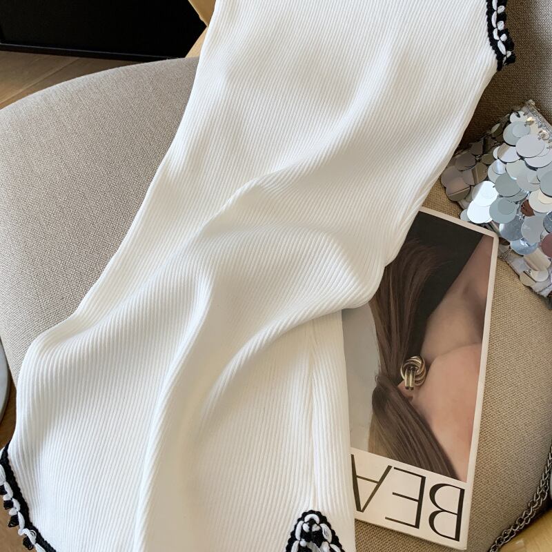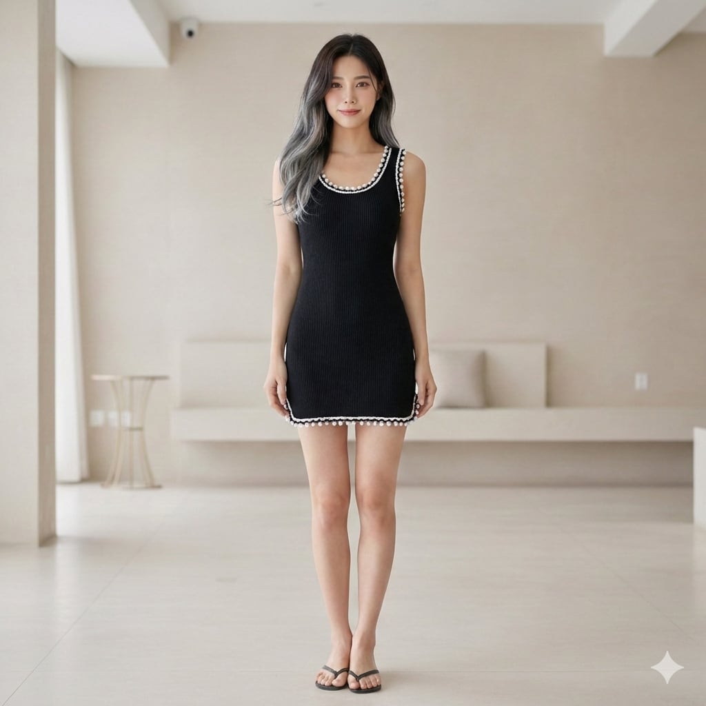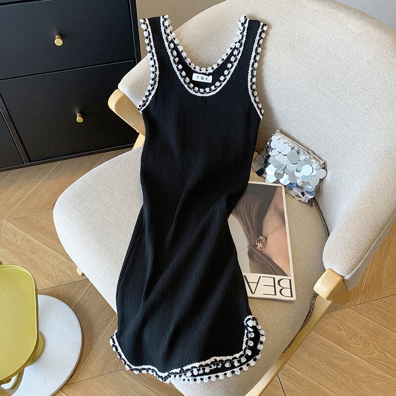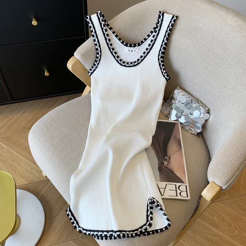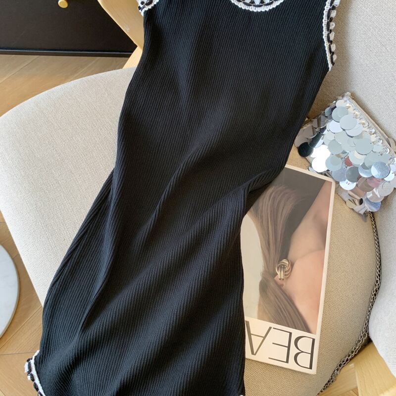【実物撮影】配色ニットミニワンピース|ノースリーブ・キャミワンピ・韓国風・夏コーデ