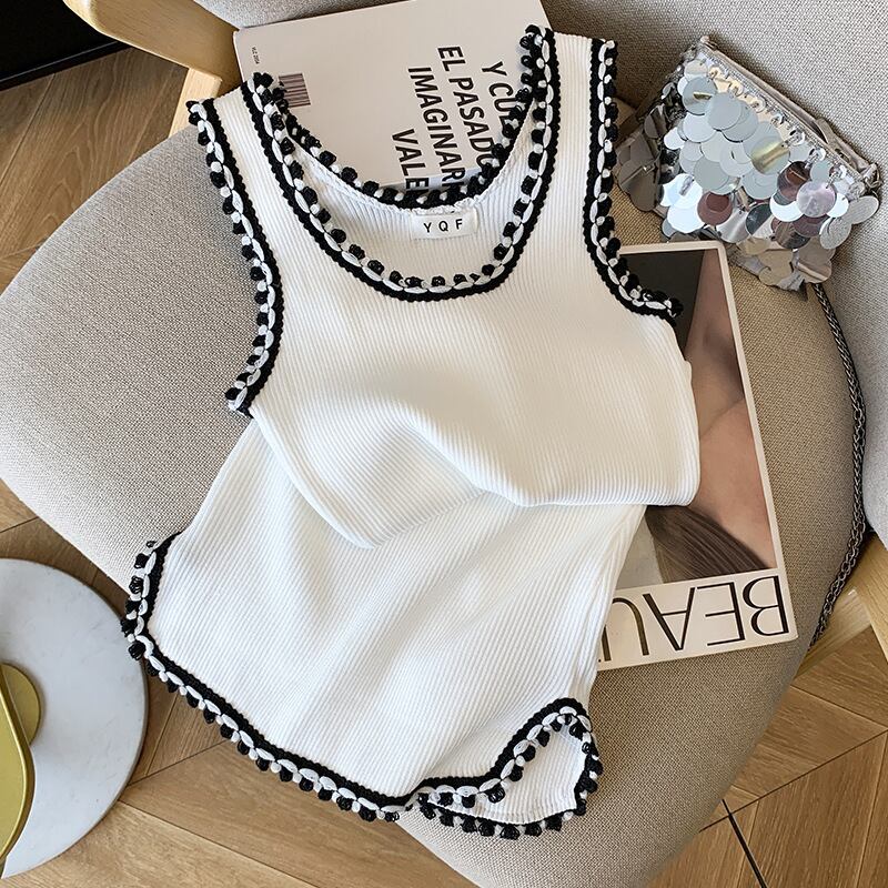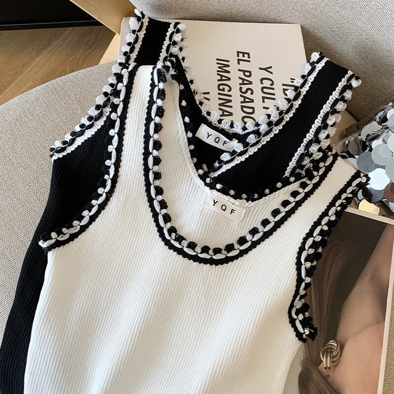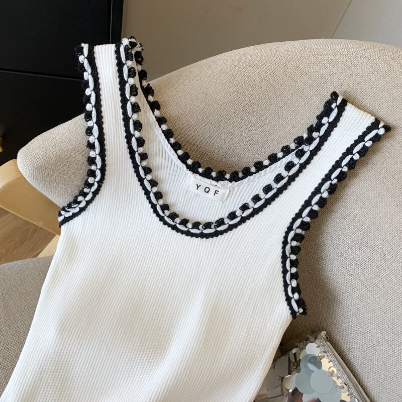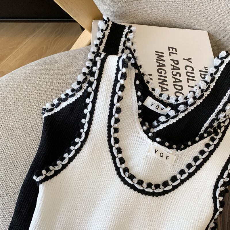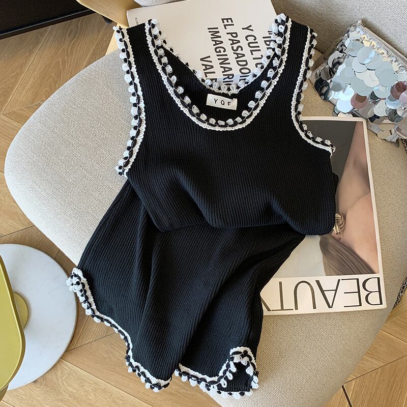 【実物撮影】配色ニットミニワンピース|ノースリーブ・キャミワンピ・韓国風・夏コーデ